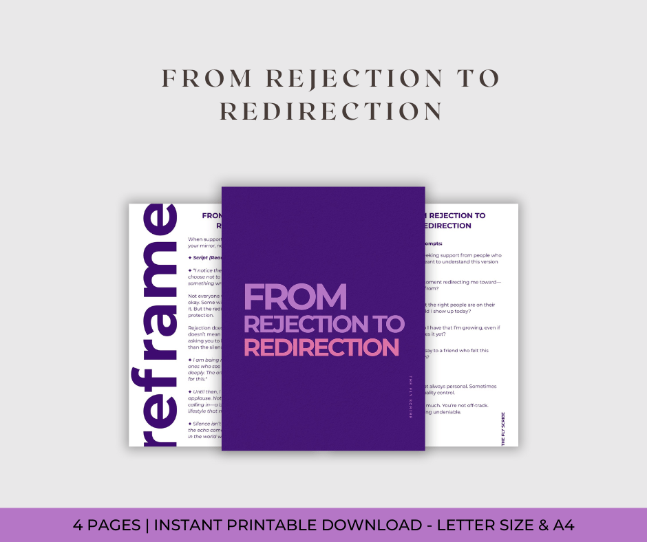 From Rejection to Redirection is your pick-me-up for the moments when you're building something brave and the people you hoped would cheer you on stay quiet. This printable includes a powerful reframe script + journaling prompts designed to help you pause, reflect, and pivot your energy without spiraling into self-doubt.